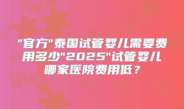 泰国试管婴儿需要费用多少“2025”试管婴儿哪家医院费用低?