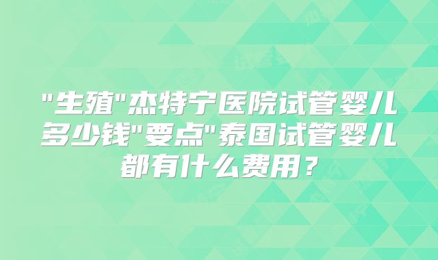 杰特宁医院试管婴儿多少钱泰国试管婴儿都有什么费用?
