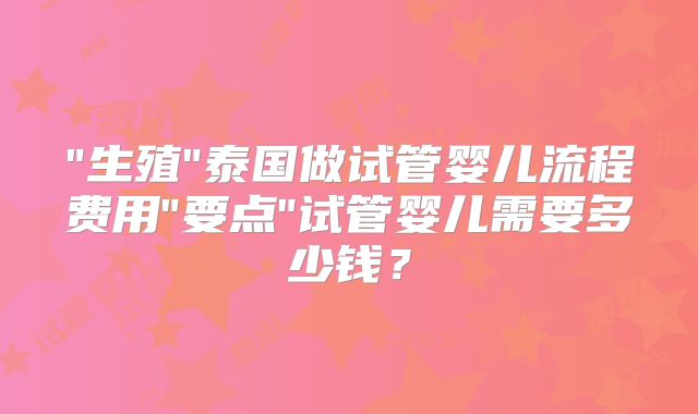 泰国做试管婴儿流程费用试管婴儿需要多少钱?