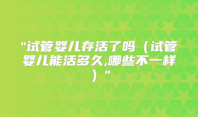 随着辅助生殖技术的不断发展,试管婴儿(IVF)已经成为许多不孕不育夫妇实现生育梦想的重要手段。试管婴儿的成功率和婴儿出生后的健康状况是大家普遍关心的问题。本文将讨论试管婴儿的存活率、能活多久以及与自然受孕婴儿相比有哪些不同。